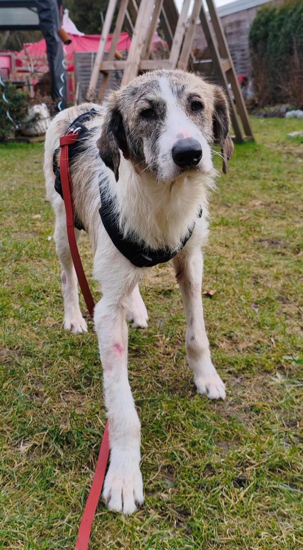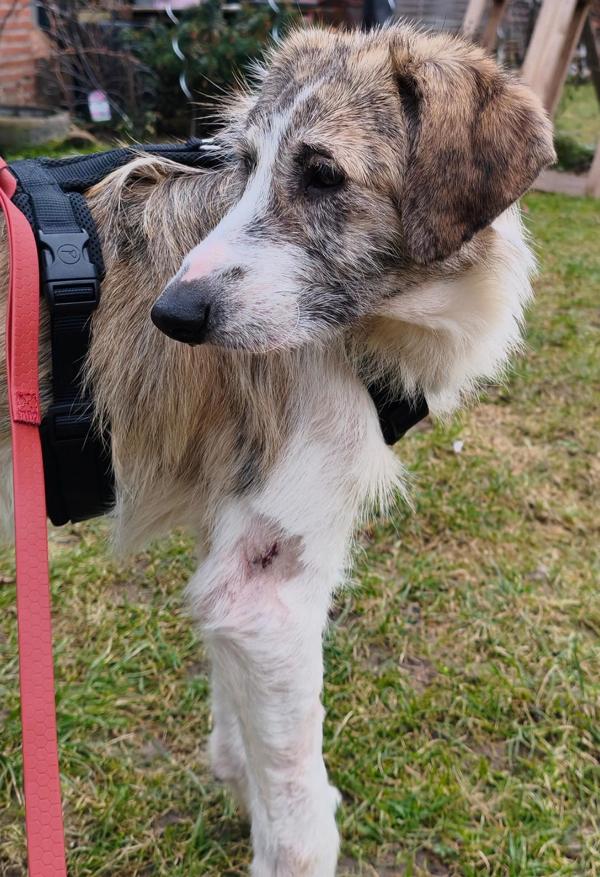 Erst jetzt sehen wir, wie viel Leid er still ertragen musste. Die vielen Wunden an seinem Körper erzählen von einer Vergangenheit, die kein Hund erleben sollte. Inzwischen vermuten wir auch, warum er so oft zum Opfer wurde: KALU scheint taub zu sein. Wie viel er noch hört, wissen wir noch nicht – im Moment braucht er vor allem Ruhe, medizinische Versorgung und Zeit.