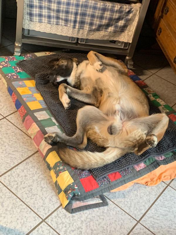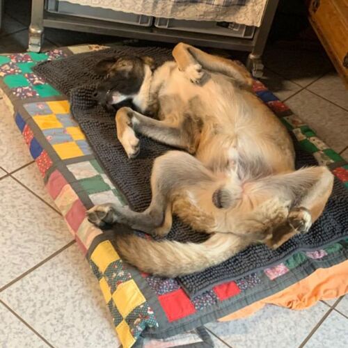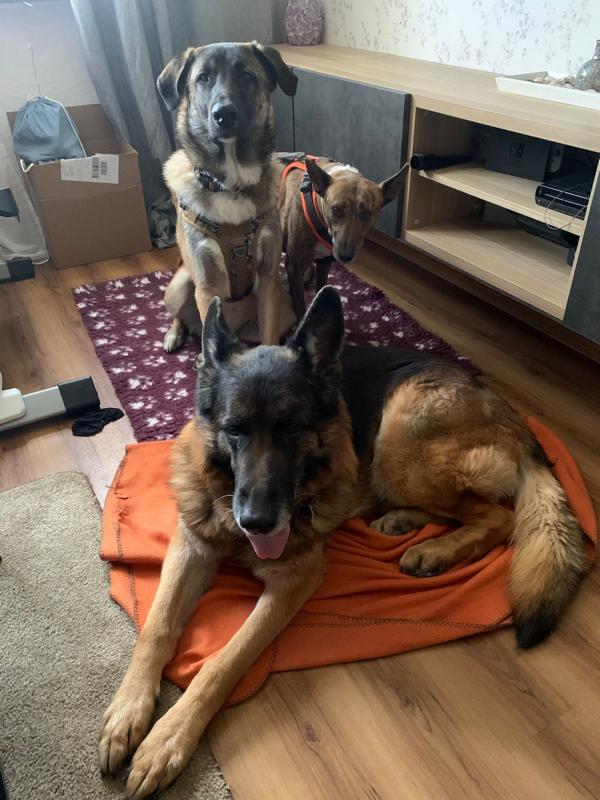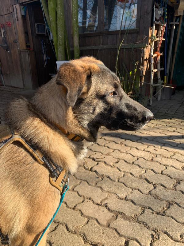 Das abrufen ohne Leine funktioniert klasse auch im Rudel hat er keinerlei Probleme. Nach wie vor unterwirft er sich dem Rudel und geht jedem Streit aus dem Weg. Er liebt den Hof und Garten und kommt auch sehr gut mit Geflügel wie Enten und Hühner zurecht.