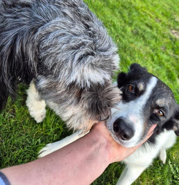May kam zusammen mit einem anderen Border ins Tierheim, der direkt Menschen gefunden hat. May ist nun bei uns angekommen und hat sicherlich nicht nur schöne Dinge bisher erlebt. Sie ist in neuen Situationen sehr unterwürfig, schmeißt sich schnell flach auf den Boden. Kleinkinder gruseln sie noch sehr. Aber sie hat sich toll entwickelt und ist zu einer ganz fröhlichen und vor allem extrem verschmusten Hündin geworden. Sie liebt das Leben im Rudel und es wäre schön, wenn ein vorhandener Hund bereits da wäre, wo man sich immer mal noch ne keine Portion Sicherheit abholen könnte. Bei uns lebt sie übrigens auch mit Katzen problemlos. May liebt Spaziergänge, läuft da sowohl an der Leine als auch an der schleppleine toll mit, orientiert sich sehr an ihr Pflegefrauchen und kommt auf Zuruf sofort angelaufen. May ist eine absolut sanfte und friedfertige Hündin, Stress geht sie immer aus dem Weg und will einfach nur gefallen. Sie himmelt ihre Menschen an und ist da sehr anhänglich, verschmust und treu ergeben. Zuhause bleibt sie auch mal problemlos und auch das Mitfahren im Auto ist kein Problem. May sucht nun sensible Menschen, die ihr Sicherheit und viel Körperkontakt bieten möchten. May sehen wir, wegen ihrer Unsicherheit, eher ländlich und ein Garten wäre toll.