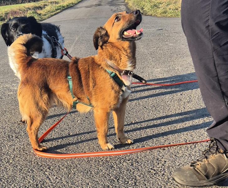 Tommes war der Tierheimalltag zu viel. Jetzt ist er bei uns angekommen und ist wie ausgewechselt. Lustig und fröhlich ist er wieder und wir sind froh, dass er so schnell alles vergessen konnte und nun genießen kann. Tommes ist anfangs schon mal etwas unsicher, taut aber schnell zu einer kleinen Ulknudel auf. Offen mit allen Menschen erobert er nun seine neue Welt. Spaziergänge sind absolut sein Ding, denn er ist ein richtiger Entdecker, aber dabei achtet er auch stets auf seine Menschen. Mit anderen Hunden kommt er bestens zurecht, egal ob im Haus oder draußen, allerdings zieht er uns Menschen anderen Hunden vor, die spielen eher zweite Geige. Katzen und Kleintiere sollten lieber nicht im neuen Zuhause sein und die Kinder sollten auch schon etwas älter sein. Nun sucht der lustige und allesnachzuholende Junghund noch ambitionierte, aktive Menschen, die nun mit ihm alles Neue erkunden, die ihm aber auch Struktur und Führung bieten sollten, da der Terrierdickkopf einen sonst schnell testet. Tommes fährt problemlos mit im Auto, läuft schon gut an der Leine und ist einfach ein toller Kerl. Ein Hund mit Spaßfaktor und fürs Pferdestehlen geboren.