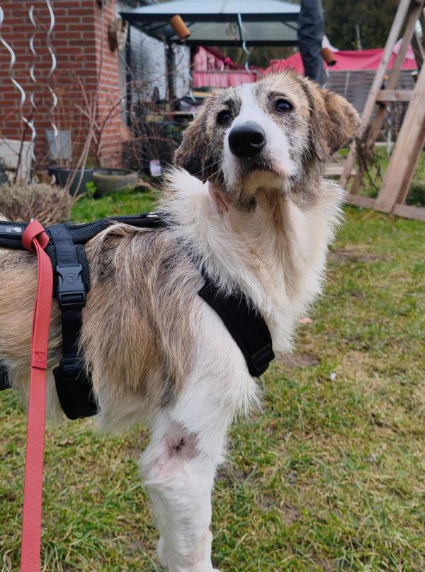 Erst jetzt sehen wir, wie viel Leid er still ertragen musste. Die vielen Wunden an seinem Körper erzählen von einer Vergangenheit, die kein Hund erleben sollte. Inzwischen vermuten wir auch, warum er so oft zum Opfer wurde: KALU scheint taub zu sein. Wie viel er noch hört, wissen wir noch nicht – im Moment braucht er vor allem Ruhe, medizinische Versorgung und Zeit.