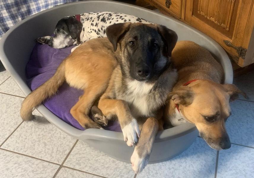 Das abrufen ohne Leine funktioniert klasse auch im Rudel hat er keinerlei Probleme. Nach wie vor unterwirft er sich dem Rudel und geht jedem Streit aus dem Weg. Er liebt den Hof und Garten und kommt auch sehr gut mit Geflügel wie Enten und Hühner zurecht.