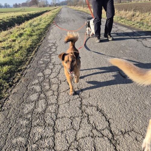 Tommes war der Tierheimalltag zu viel. Jetzt ist er bei uns angekommen und ist wie ausgewechselt. Lustig und fröhlich ist er wieder und wir sind froh, dass er so schnell alles vergessen konnte und nun genießen kann. Tommes ist anfangs schon mal etwas unsicher, taut aber schnell zu einer kleinen Ulknudel auf. Offen mit allen Menschen erobert er nun seine neue Welt. Spaziergänge sind absolut sein Ding, denn er ist ein richtiger Entdecker, aber dabei achtet er auch stets auf seine Menschen. Mit anderen Hunden kommt er bestens zurecht, egal ob im Haus oder draußen, allerdings zieht er uns Menschen anderen Hunden vor, die spielen eher zweite Geige. Katzen und Kleintiere sollten lieber nicht im neuen Zuhause sein und die Kinder sollten auch schon etwas älter sein. Nun sucht der lustige und allesnachzuholende Junghund noch ambitionierte, aktive Menschen, die nun mit ihm alles Neue erkunden, die ihm aber auch Struktur und Führung bieten sollten, da der Terrierdickkopf einen sonst schnell testet. Tommes fährt problemlos mit im Auto, läuft schon gut an der Leine und ist einfach ein toller Kerl. Ein Hund mit Spaßfaktor und fürs Pferdestehlen geboren.
