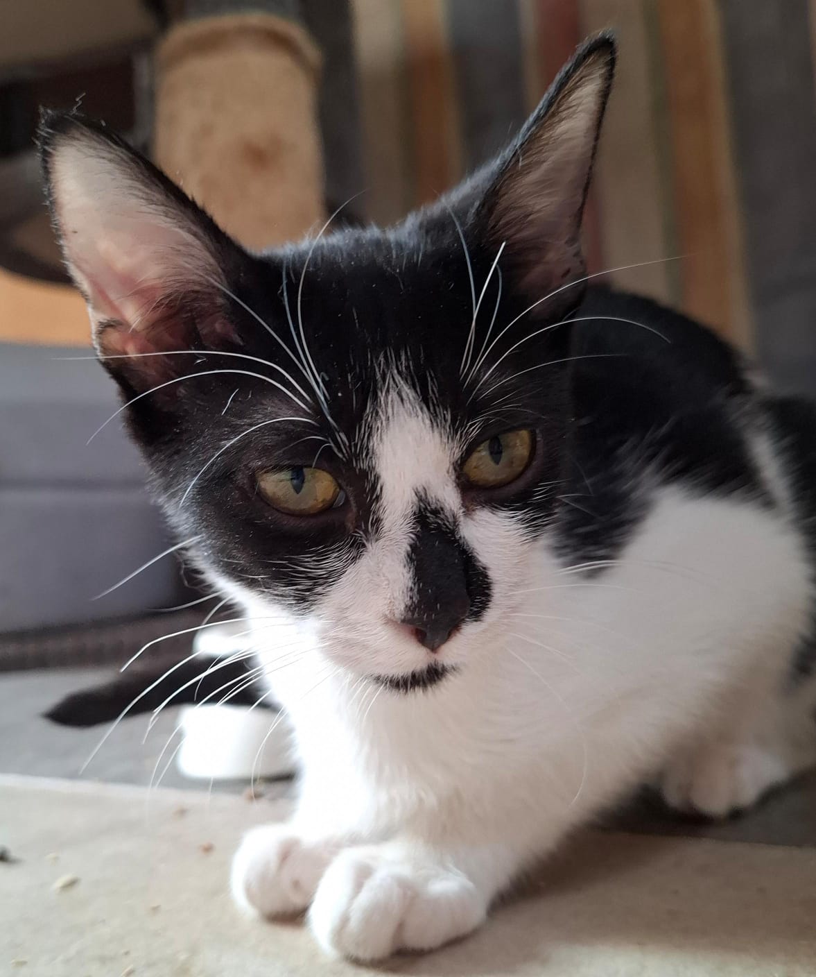 Bebe ist eine sanfte, 5 Monate alte Katze, die mit ihrem feinen Wesen sofort verzaubert. Anfangs hält sie sich lieber etwas im Hintergrund und beobachtet das Geschehen in Ruhe, doch sobald man ihr Aufmerksamkeit schenkt, taut sie schnell auf und zeigt, wie viel Liebe in ihr steckt.